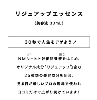 30秒で体感できる NMN※1 × ヒト幹細胞※2 配合化粧品